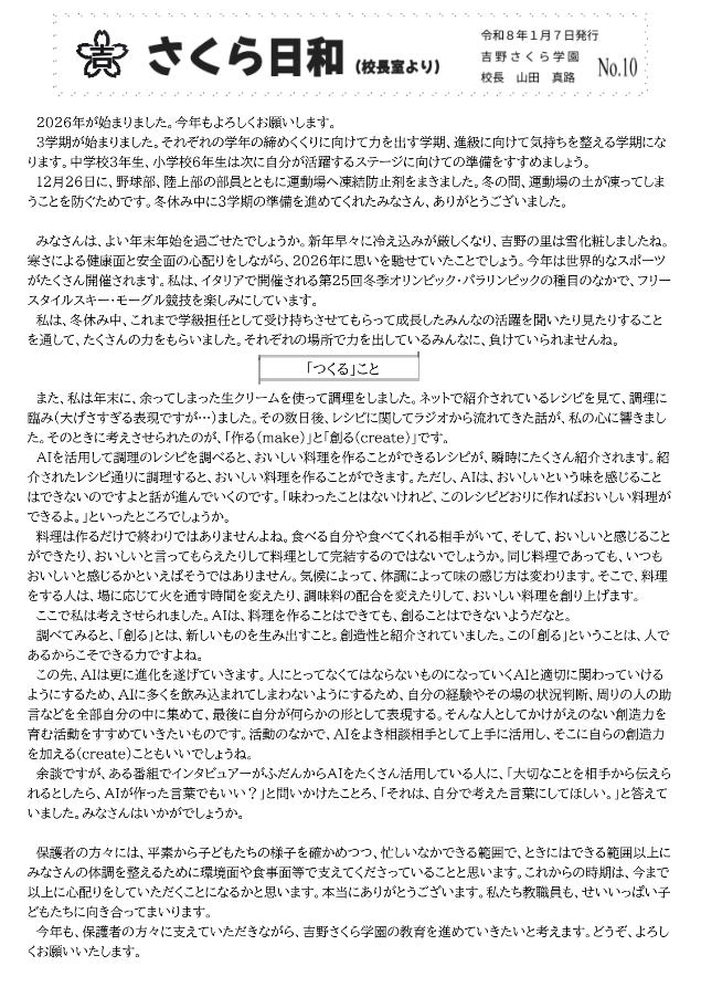 さくら日和(校長室より)No.10